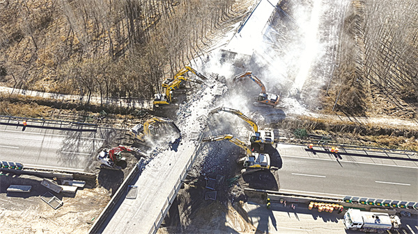 12月3日,河北高速恒质集团廊涿高速公路改扩建工程施工二分部经过连续24小时的紧张作业,顺利完成沿线5座天桥的拆除任务,廊涿高速公路南半幅恢复正常通行,为后续改扩建工程奠定了坚实基础。(杨雨萌 安子宇/摄)