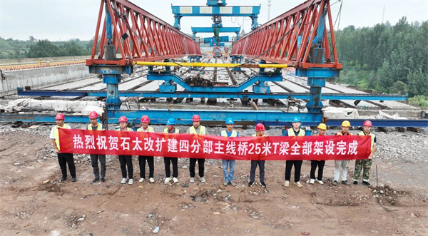 连日来,河北交投集团石太高速改扩建4分部梁板架设施工捷报频传。8月24日,随着李家庄大桥最后一片梁板精准落位,主体4分部主线桥梁板全部架设完成;9月11日,随着K670+006.762天桥最后一片梁板精准落位,4分部上跨主线天桥梁板全部架设完成。至此,石太高速改扩建4分部全部预制梁板在全线不断交施工条件下,圆满完成架设任务,标志着石太高速改扩建4分部工程取得突破性进展,为2025年全线通车奠定坚实基础。