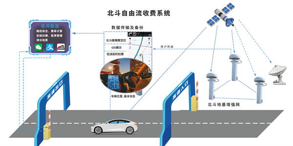 北斗自由流高速公路收费系统通过北斗卫星导航系统、地基增强系统、多种电子支付手段融合应用,实现北斗用户车辆快速驶入、驶出收费站,并精确还原车辆行驶路径,完成通行费计费,实现在线实时扣费,显著提高收费站通行效率,具备可靠、便捷、开放、经济等显著优势。与传统ETC车道相比,北斗自由流车道通行效率可提高5%至15%,该技术应用后为交通堵点提供了解决新方案。